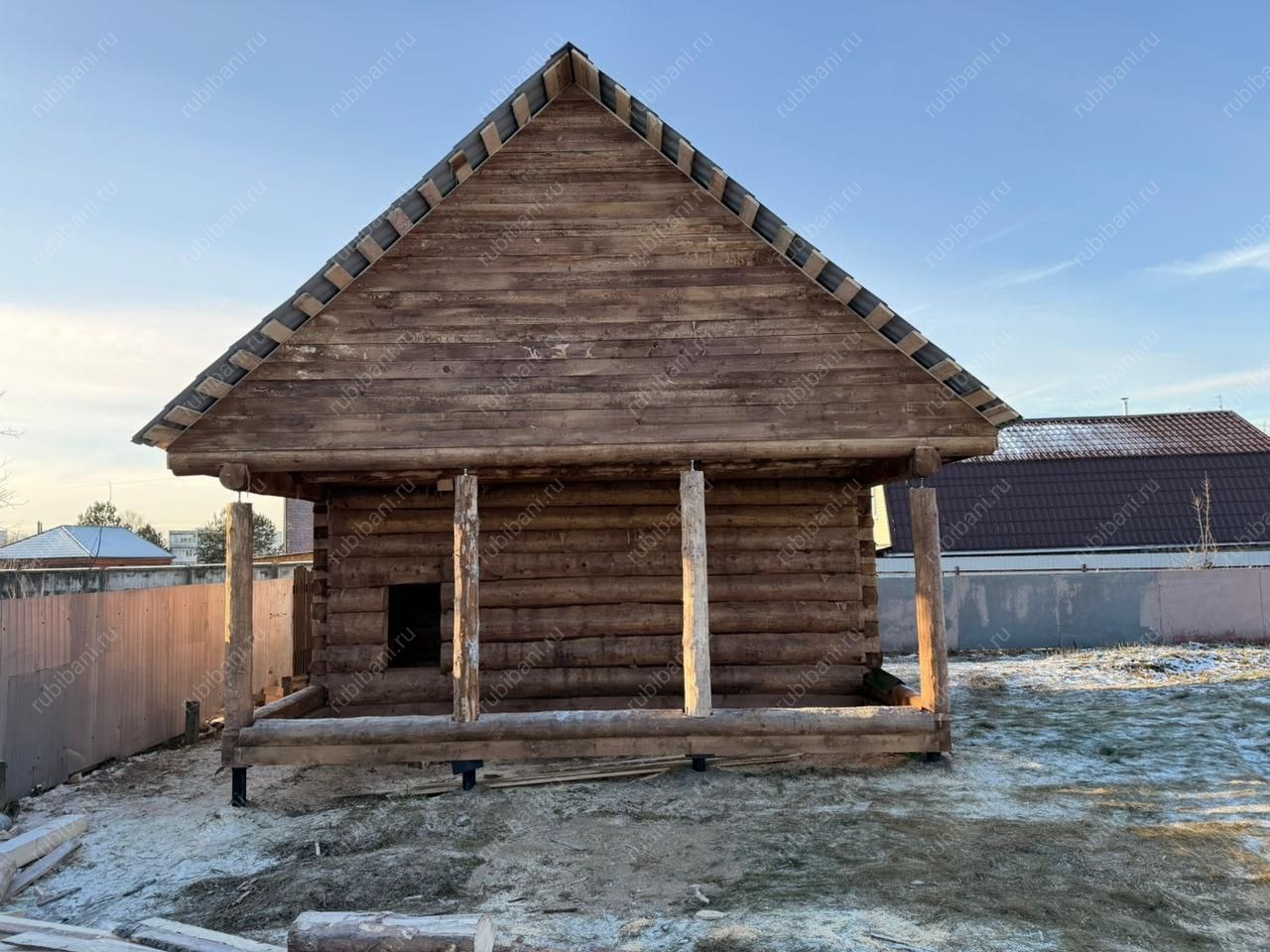 - Крыша покрывается временно рубероидом (под усадку)